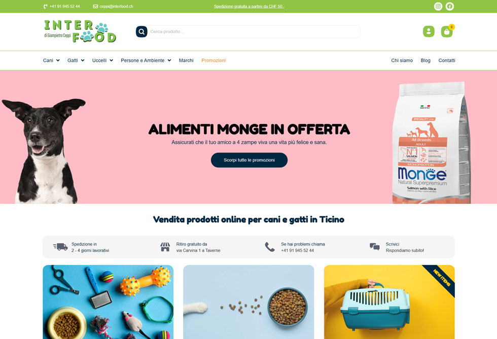 Vendita prodotti per cani e gatti in Ticino